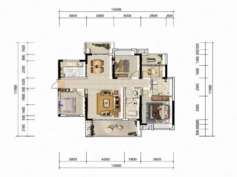 4室2厅2卫 | 建面125.45m² | 福城桃源