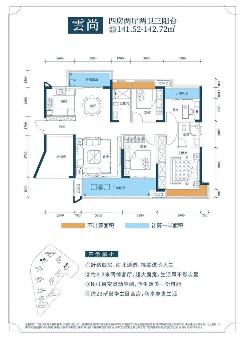 4室2厅2卫 | 建面149m² | 丽景君临天下