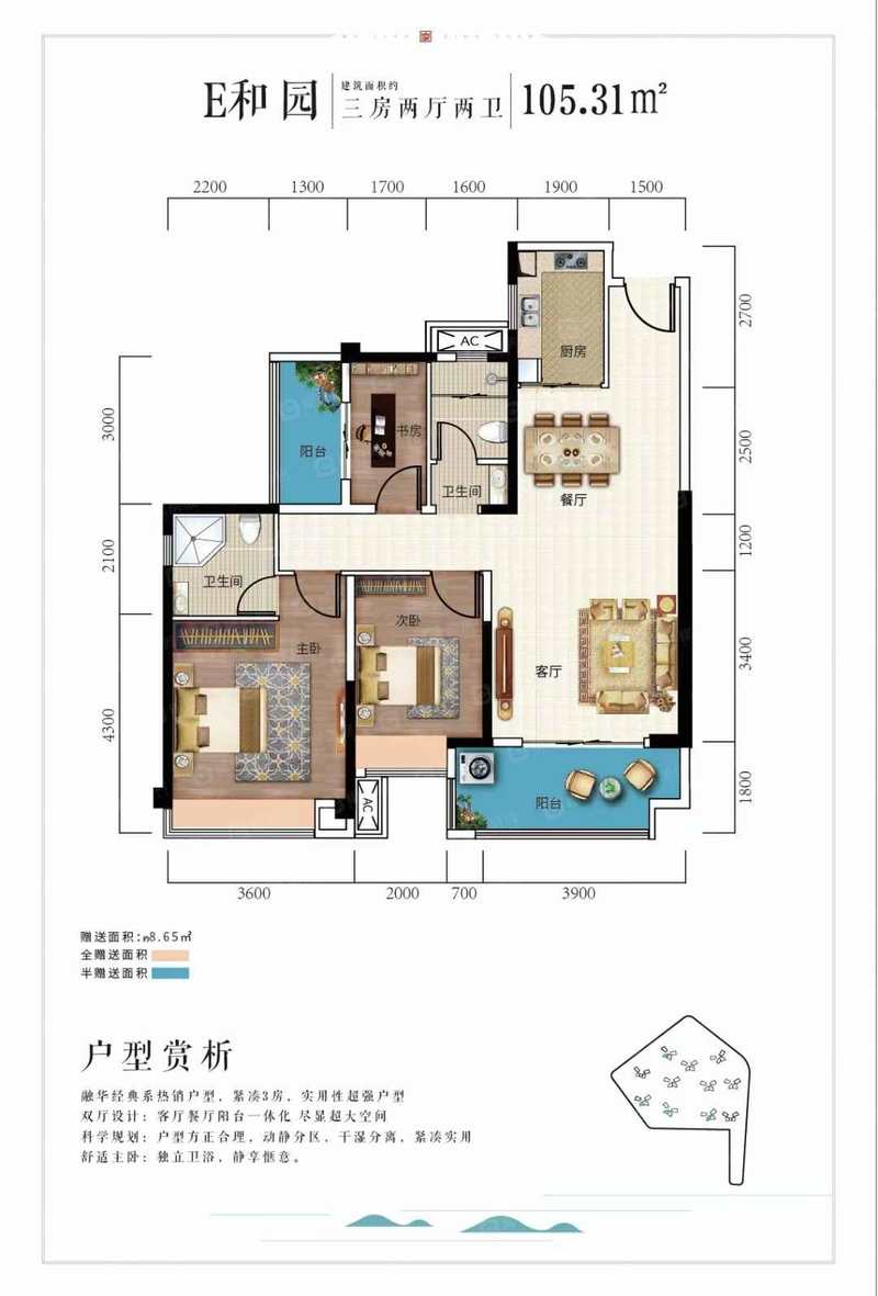 3室2厅2卫 | 建面103m² | 青城美林