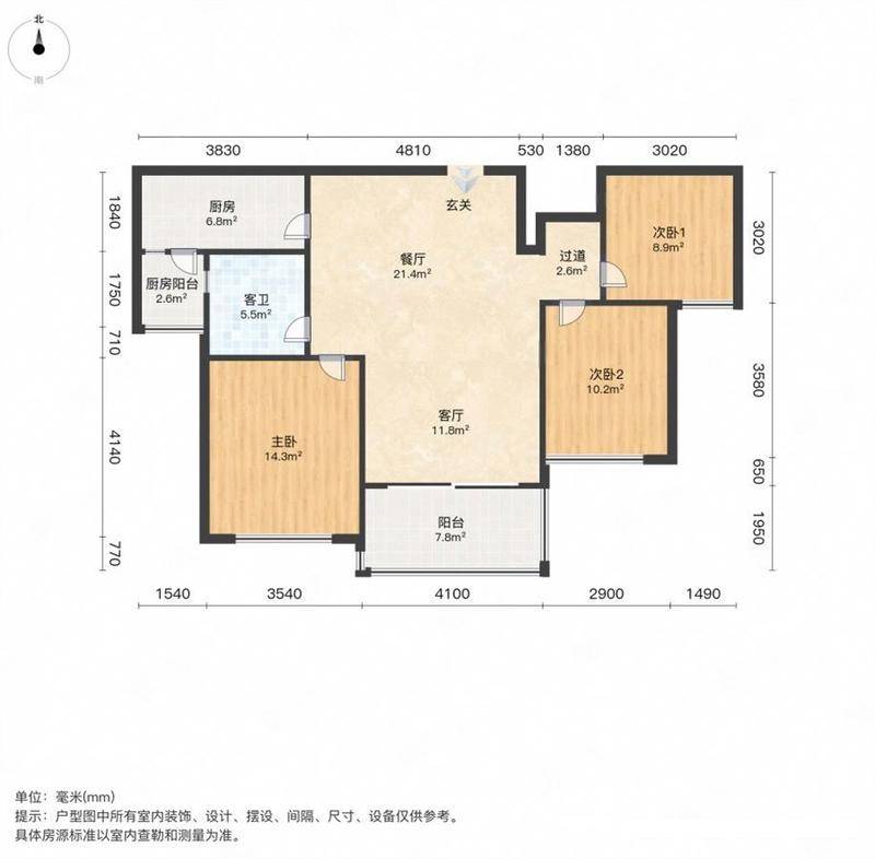 3室2厅1卫 | 建面99m² | 东玺台