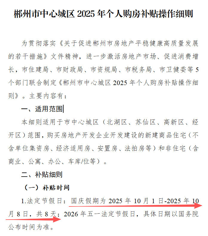 以下为《郴州市城区2025年个人购房补贴操作细则》原文↓↓↓